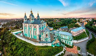 Старейший город России на холмистом берегу Днепра. Некоторые считают, что холмов семь, на самом деле в окрестностях их более десятка. На правом берегу реки высятся Таборная (Девичья), Покровская, Тихвинская горы. На левом — Авраамиевский, Георгиевский, Соборный холмы, Воскресенская гора.