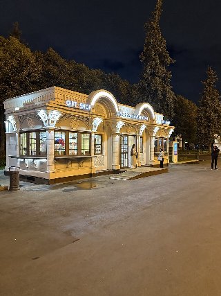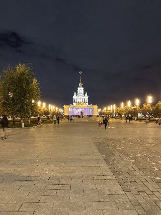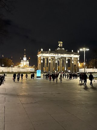 насладиться видами, которые днём кажутся совершенно иными. Подсветка подчёркивает детали фасадов, выделяя элементы советской архитектуры, от монументальных колонн до резных барельефов. Интересные факты о ВДНХ ВДНХ — один из крупнейших выставочных комплексов в мире, его территория занимает более 325 гектаров. За всю историю существования ВДНХ её посетило более 500 миллионов человек. В павильоне "Космос" выставляется копия первого искусственного спутника Земли, запущенного в 1957 году. Останкинская телебашня, видимая с территории ВДНХ, до 2003 года была самой высокой свободностоящей конструкцией в мире (540 метров). На территории ВДНХ расположено 8 парков и более 50 павильонов, каждый из которых имеет свою уникальную тематику. Фото автора.
